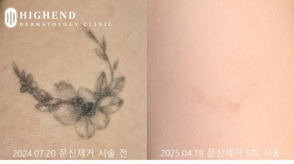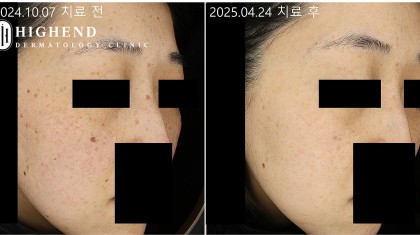 흑백의 색소가 진하게 남아있고 시술로 희미해진 구간이 있긴 했으나 남아있는 색소의 밀도가 여전히 높았습니다.