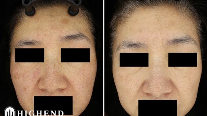 60대 여성분으로 얼굴에 전체적으로 나타난 기미와 잡티, 붉은기를 치료했던 사례입니다.