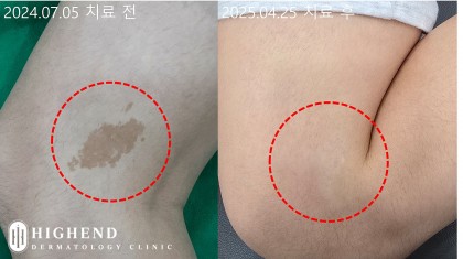 10대 여자 아이 다리에 있던 밀크커피반점을 깔끔하게 제거한 치료 사례입니다.