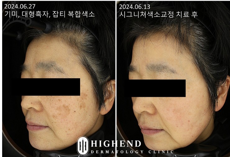 오늘은 기미와 잡티, 그리고 크기가 큰 흑자까지 복합적으로